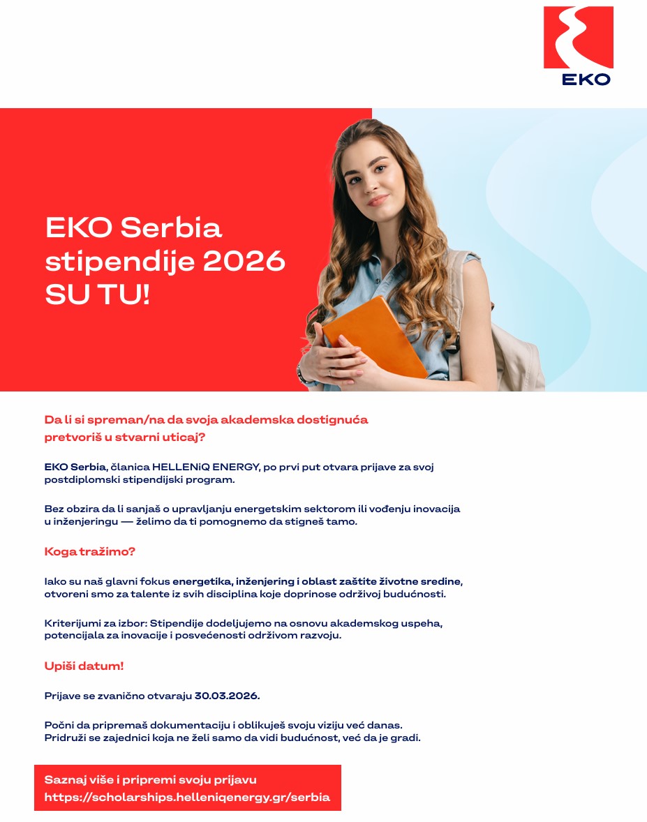 - EKO Serbia AD Beograd, чланица HELLENiQ ENERGY, програм постдипломских стипендија